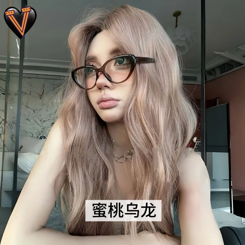 Gentle Welcome Персик Улун Перука Женская Медово-персиковый Улун Средняя Строчка Рябь Элегантность Полная Перука с Объемным Оболонкой
