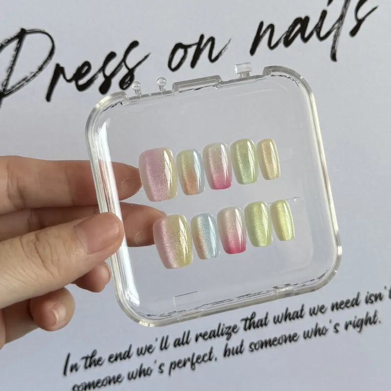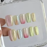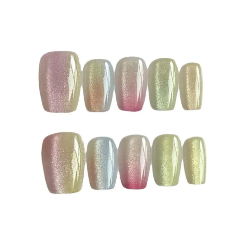 Gentle Welcome Shimmer Dreamy Brightening False Nail Short LADDER Gradient Multicolor Smudge Cat Eye