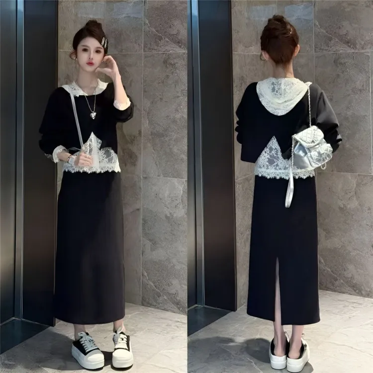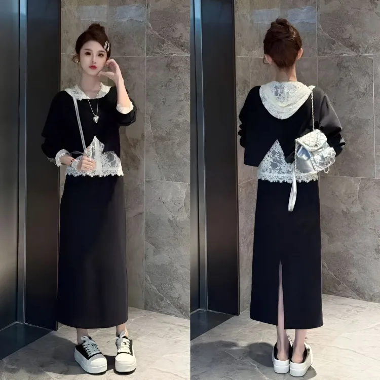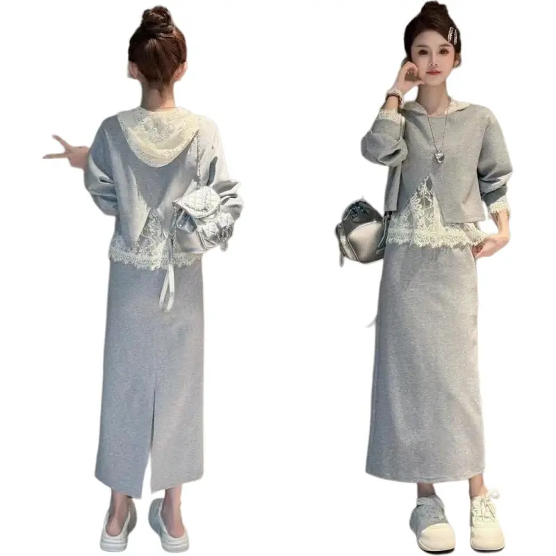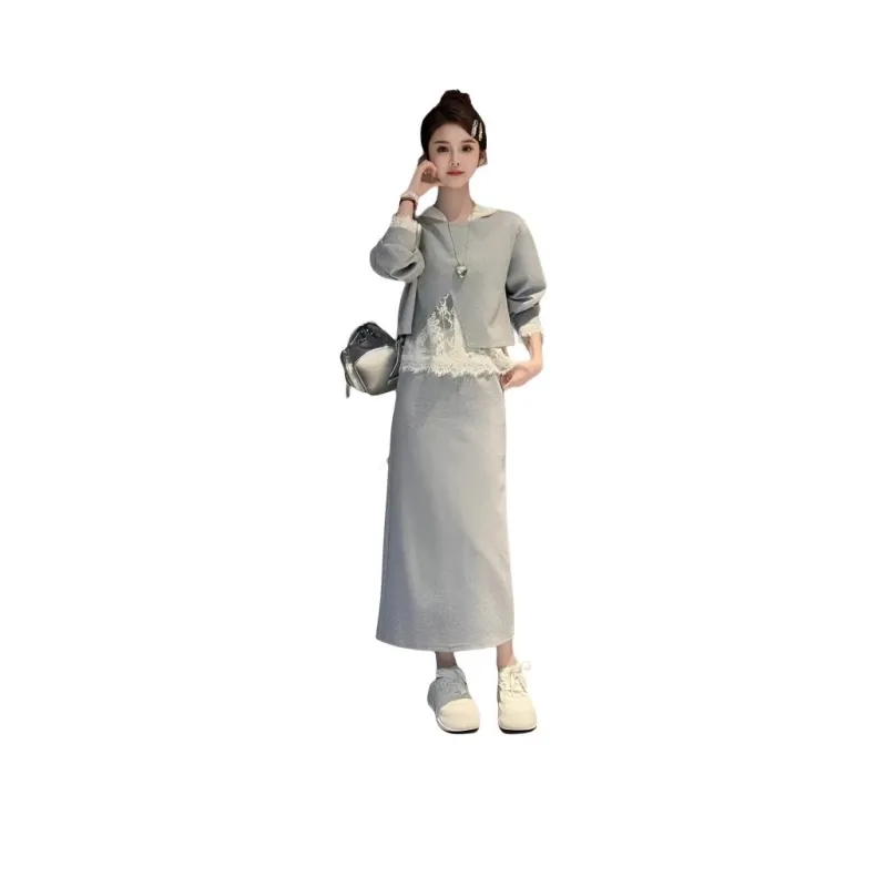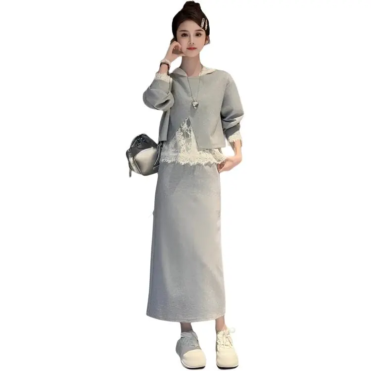 Комплект:Серая юбка, трехкомпонентный комплект (кружево, ручная стирка)