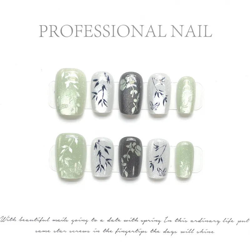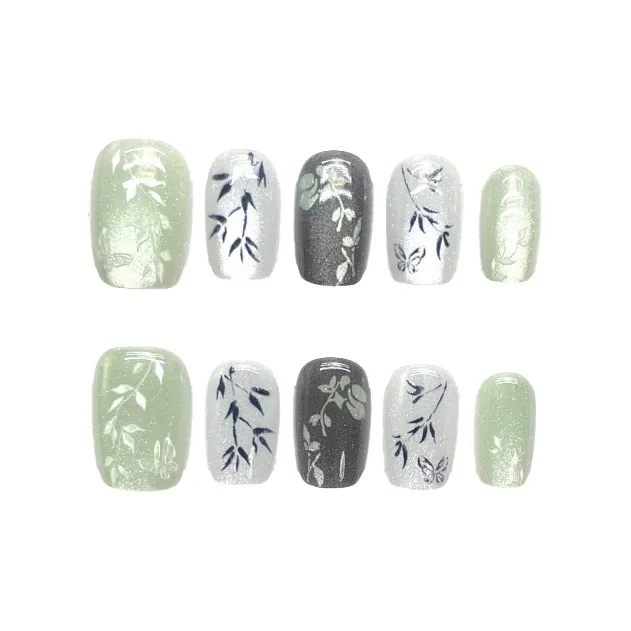 Gentle Welcome Climb Spring Mountain False Nail Short Green Jump Color Cat Eye