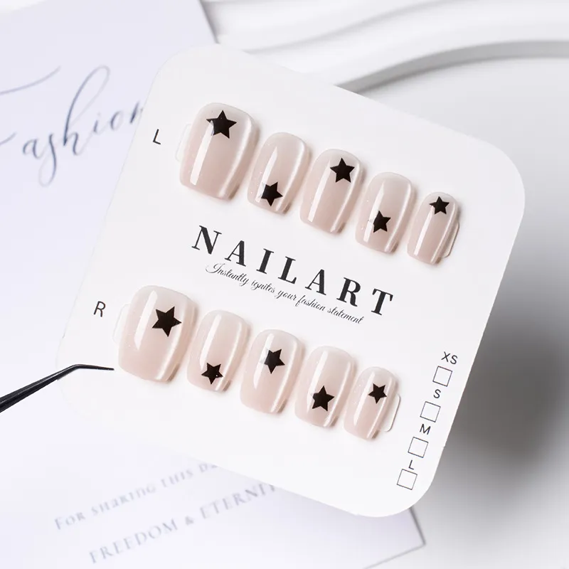 Gentle Welcome Лето Минималистский стиль Звезды False Nail Короткий Розовый Однотонный Кошачий глаз