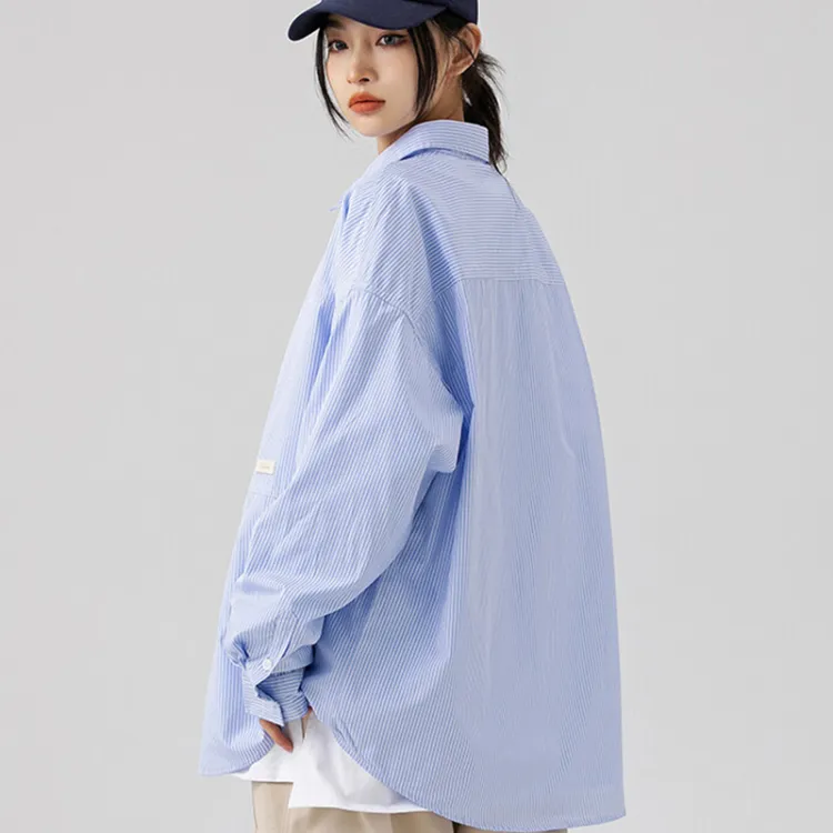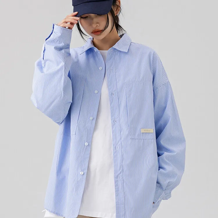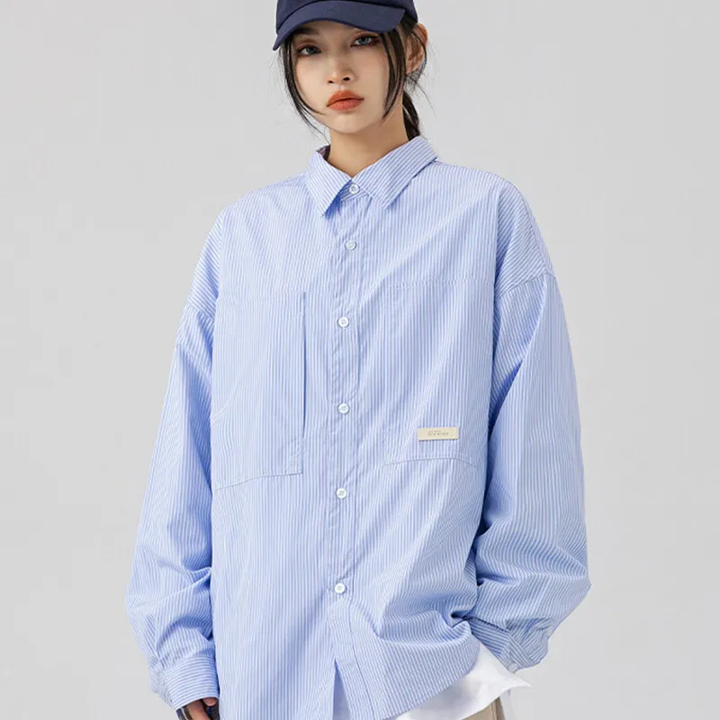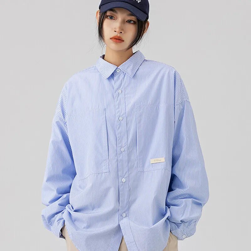 GEPURUI Белый и синий цвет Полосы Унисекс Рубашки