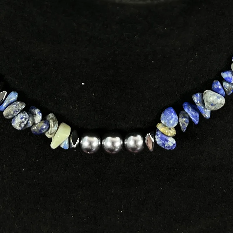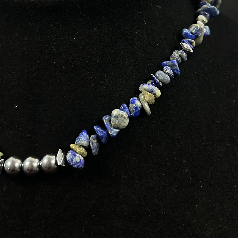Get'em ON Смешанный Crushed Камень Черная Оболочка Бусины Титановая Сталь Серебряный самородок Ожерелья Унисекс