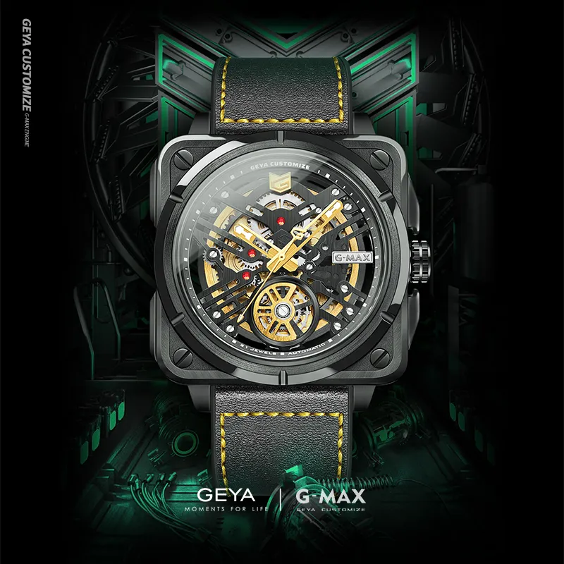 GEYA Ограниченная серия Racing Edition и г Max Engine Collection Автоматический механический механизм Часы Мужские с черепным циферблатом