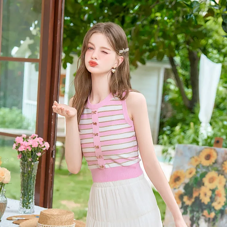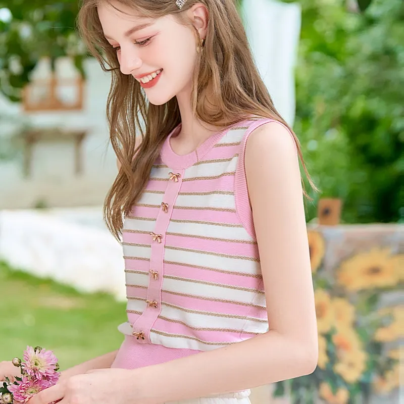 Geyini SS24 Майка Женская Розовая с Полосами
