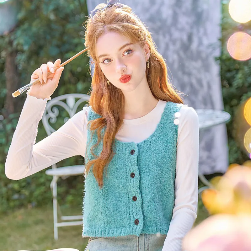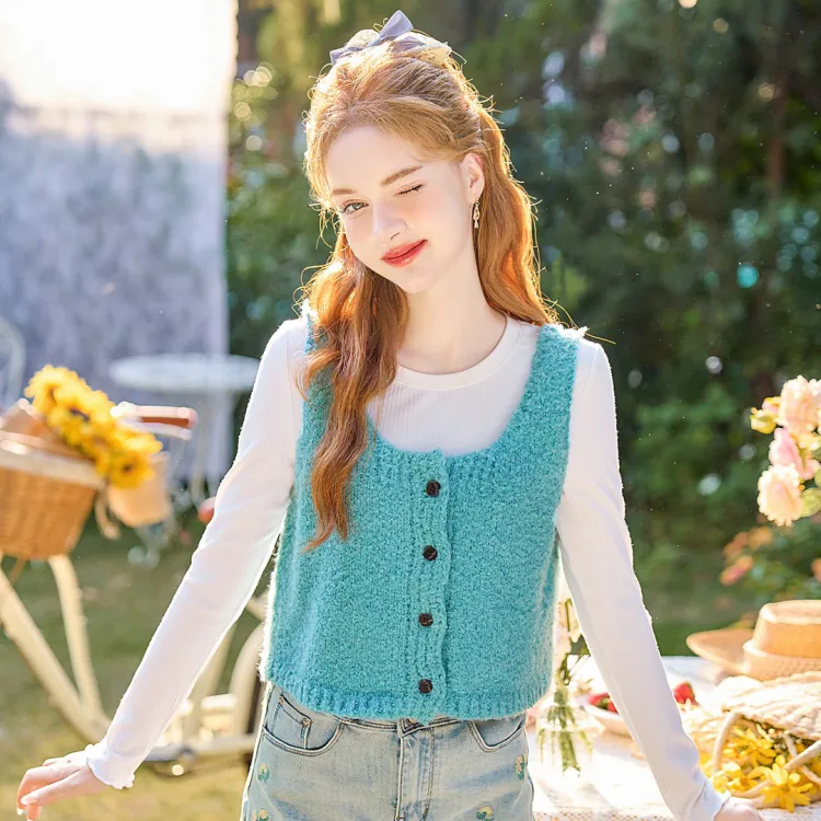 Geyini Жилет Женские Павлин Синий