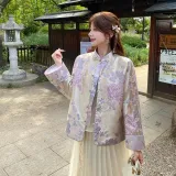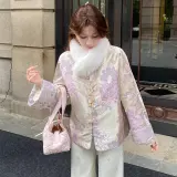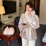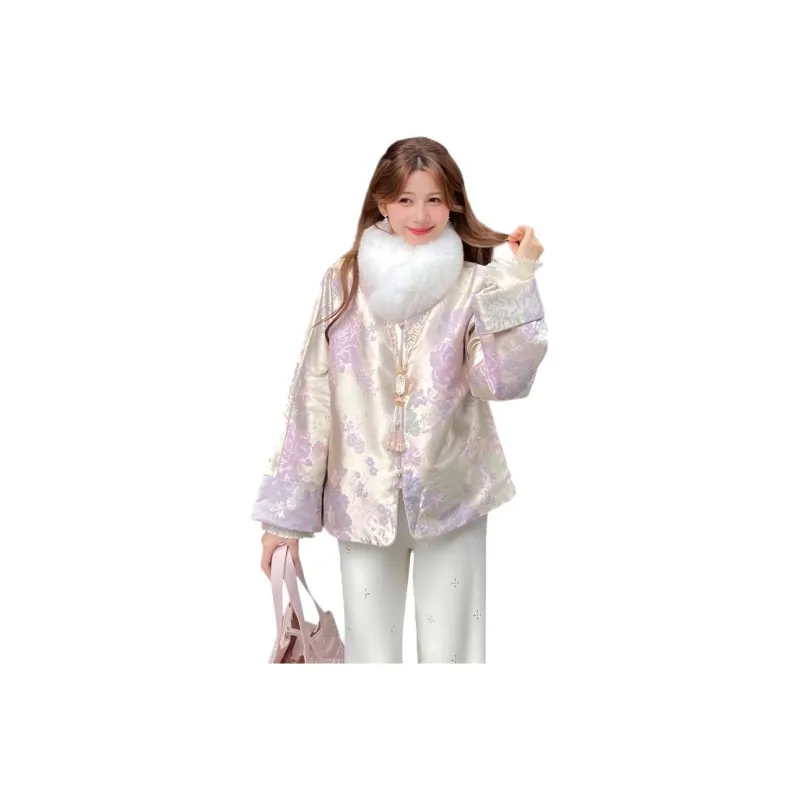 GEZITAI Розовый Фиолетовый с меховым воротником Без аксессуаров Унисекс Короткое пальто