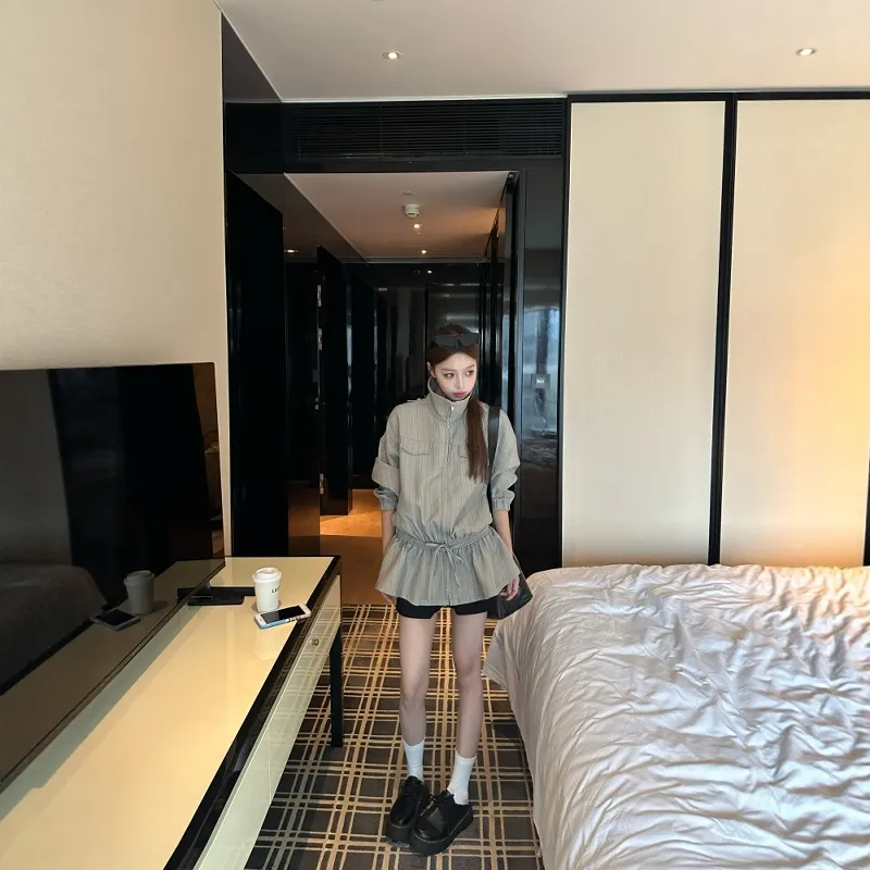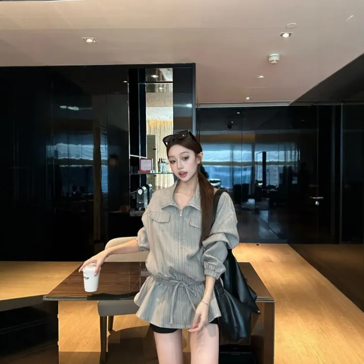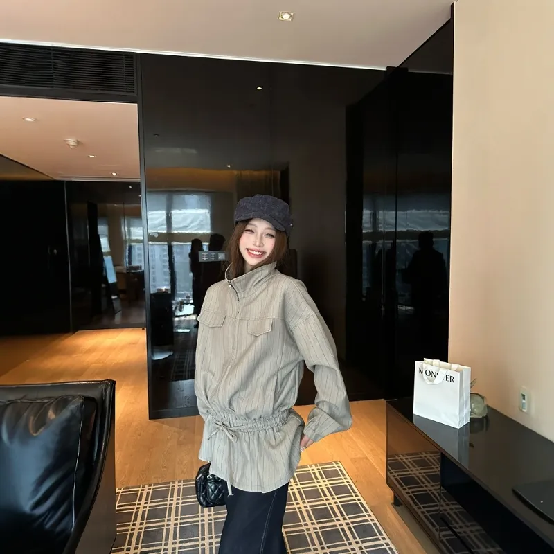 GEZITAI Серые полосы Женские Куртки