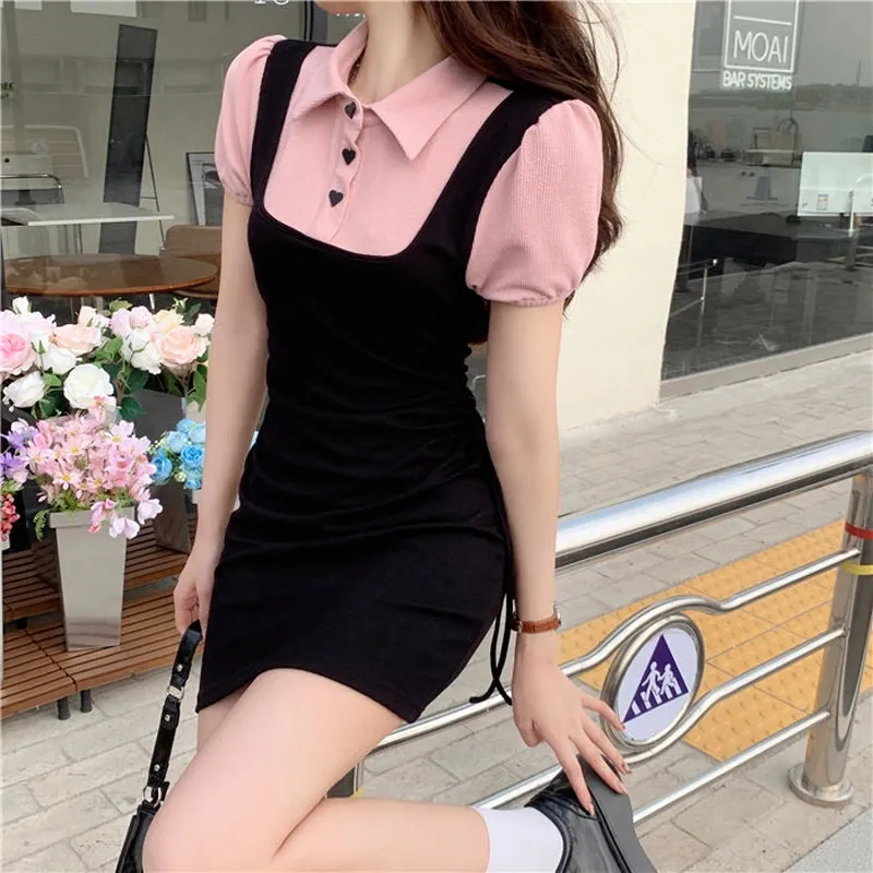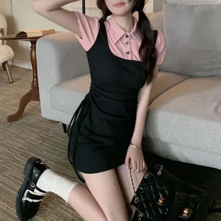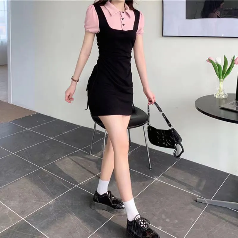 GEZITAI Короткое платье с короткими рукавами женское