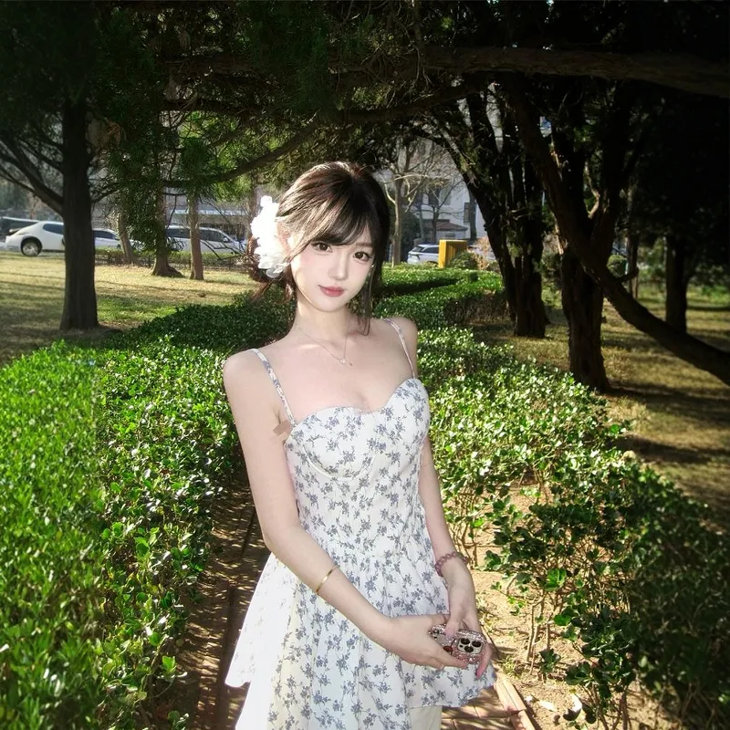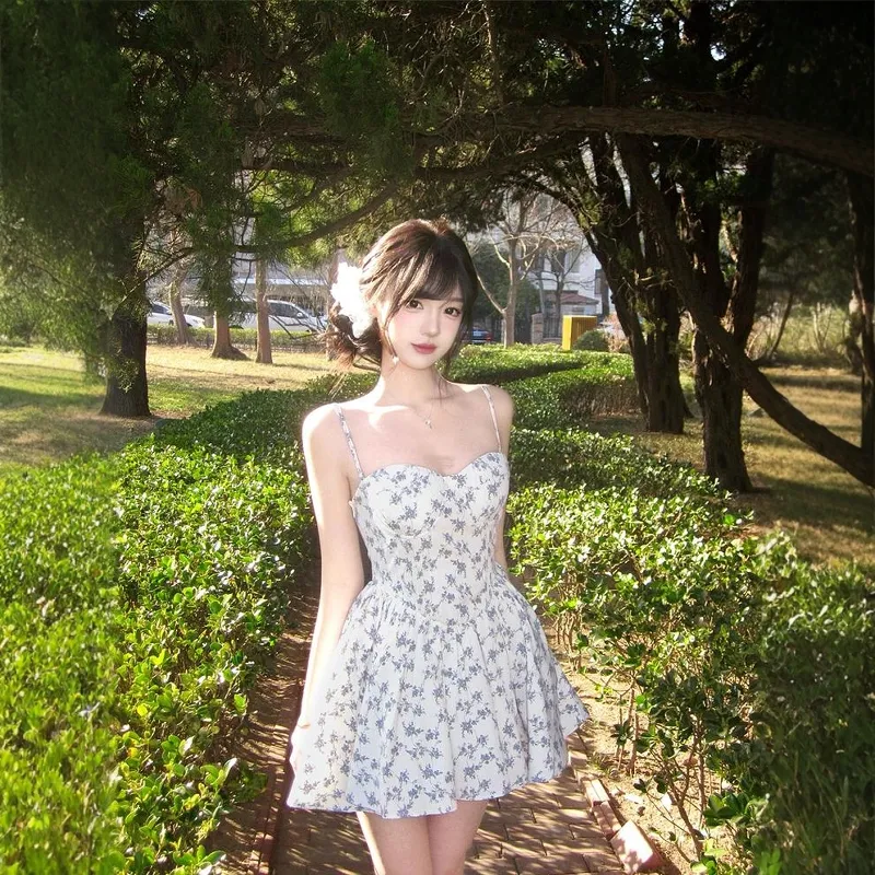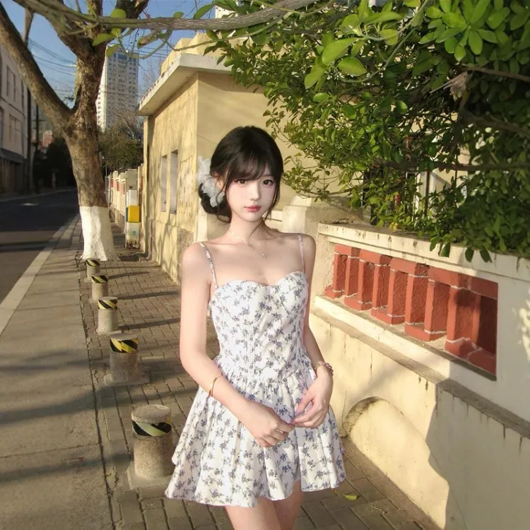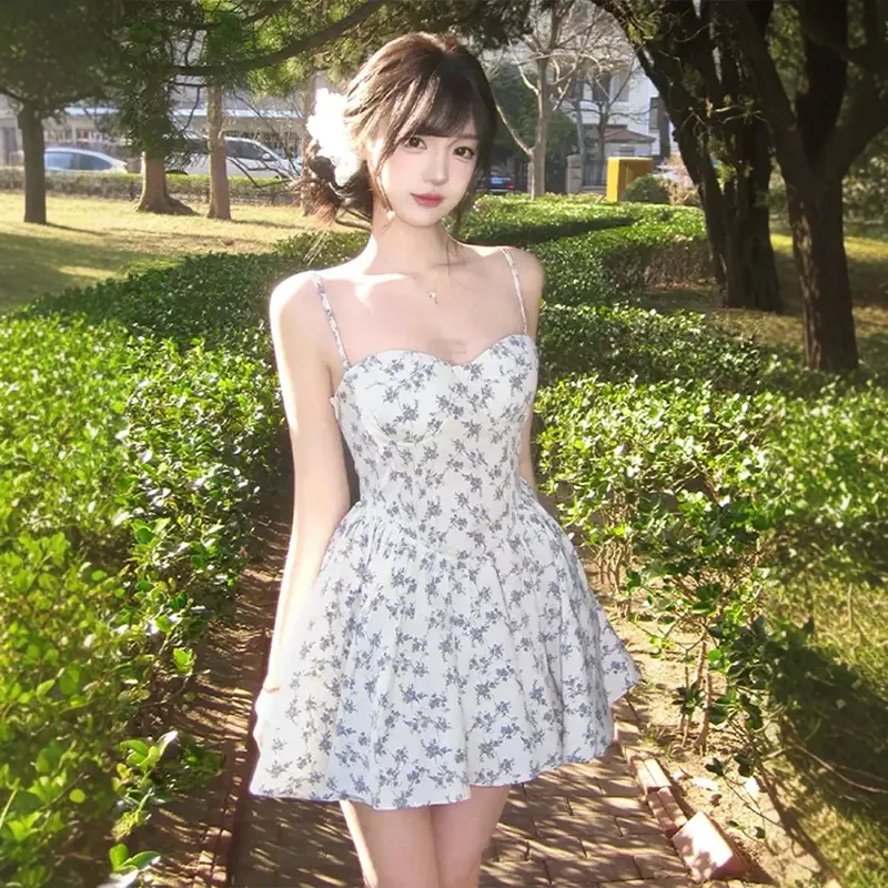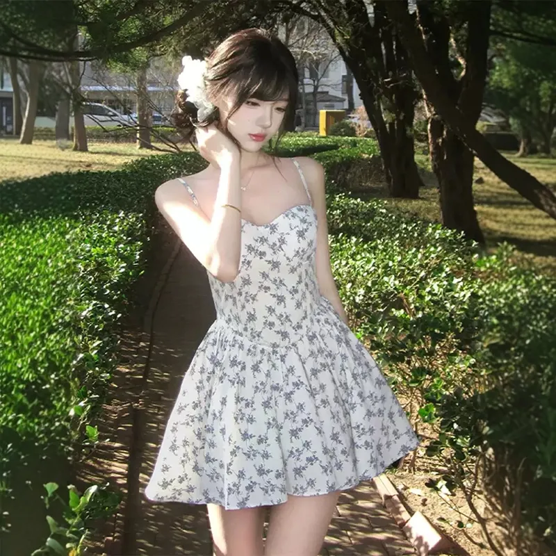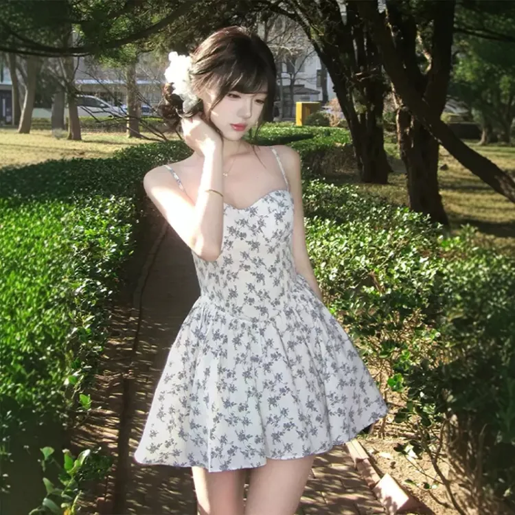 GEZITAI Бежевый с Голубым цветком Женские Слиплатья