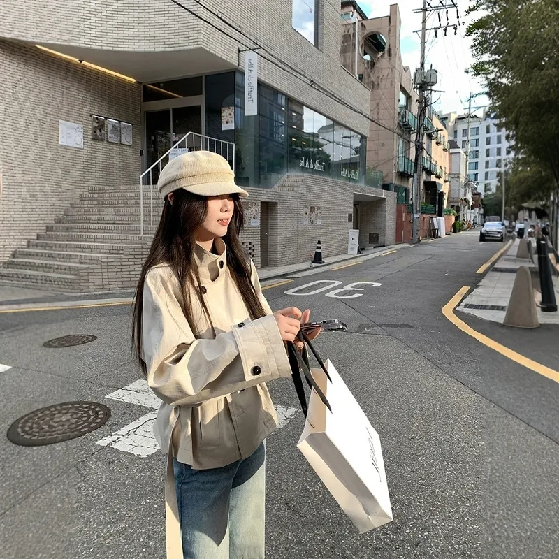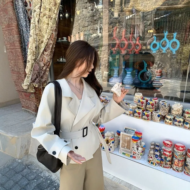 GEZITAI Экрю Женская тренч-куртка