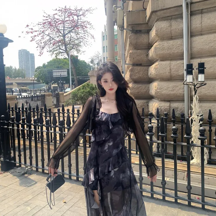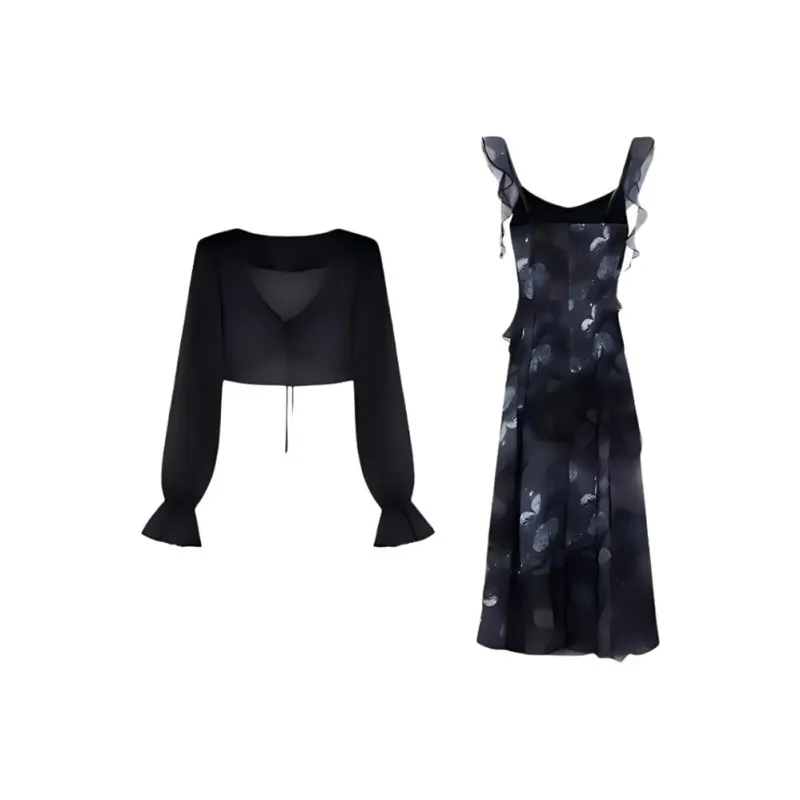 Комплект:Чёрное платье + кардиган