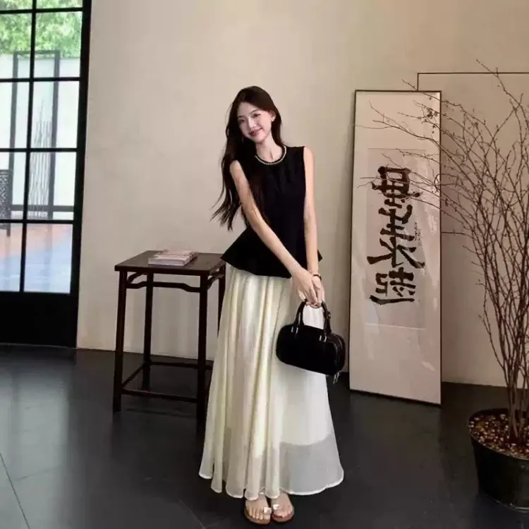 Комплект:Чёрный топ + юбка
