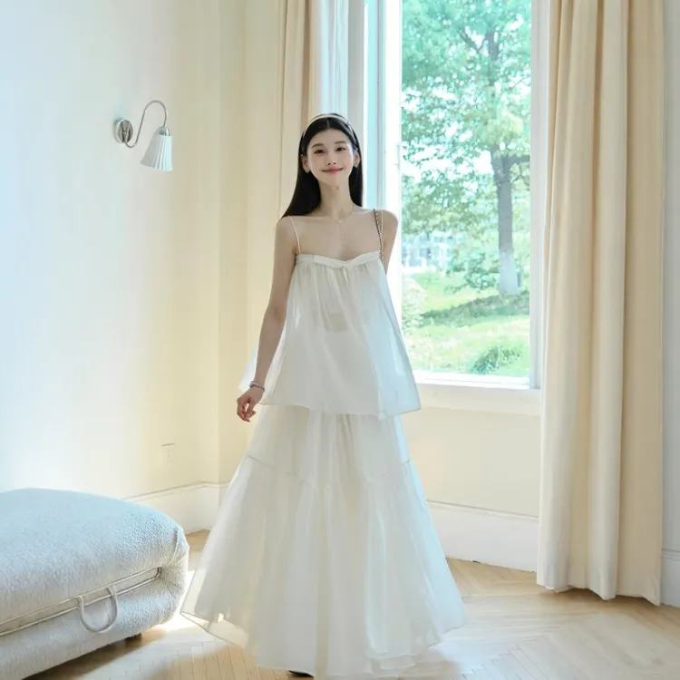 Комплект:Комплект одежды (Топ на бретелях цвета экрю + Юбка)