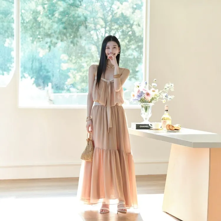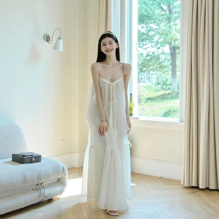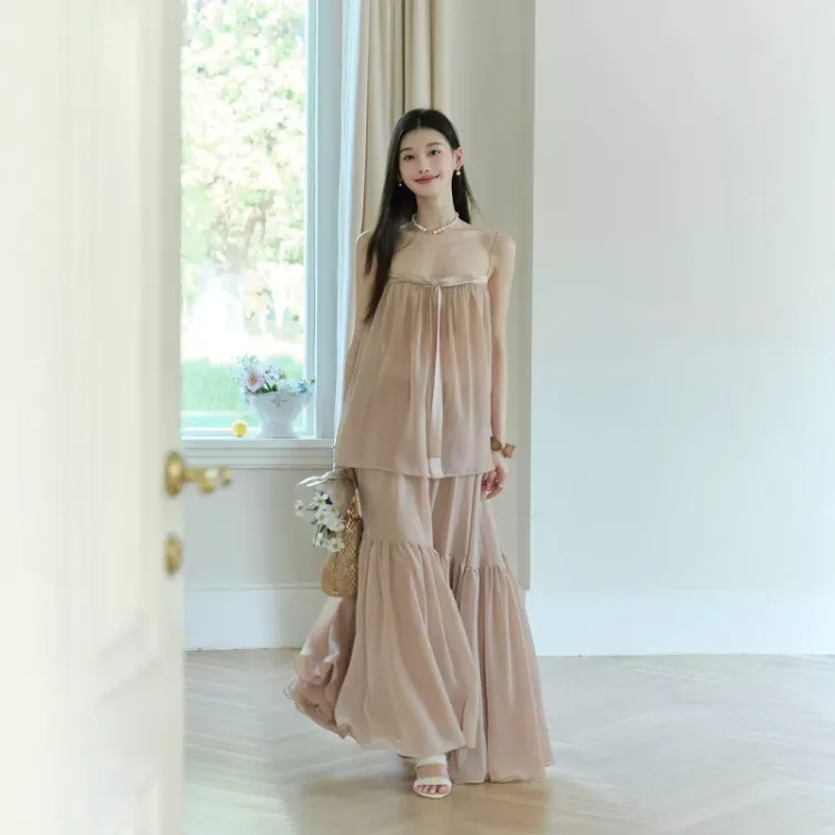 Комплект одежды (Топ на бретелях цвета экрю + Юбка)