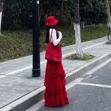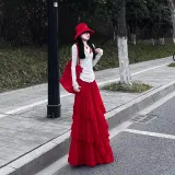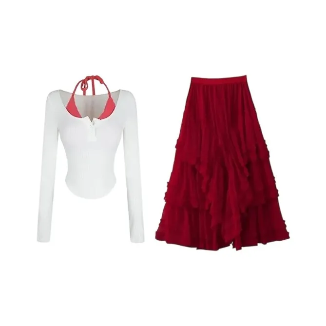 Комплект:Белый топ + Красная юбка