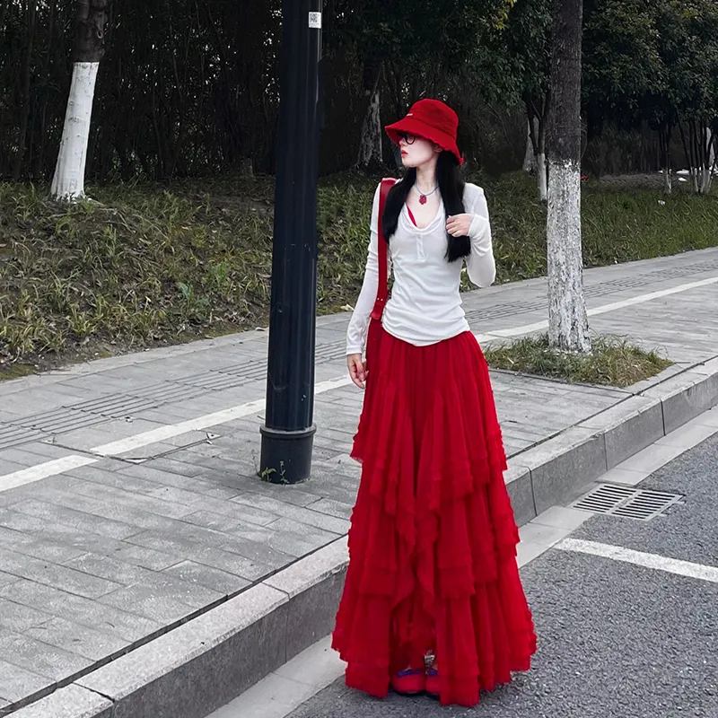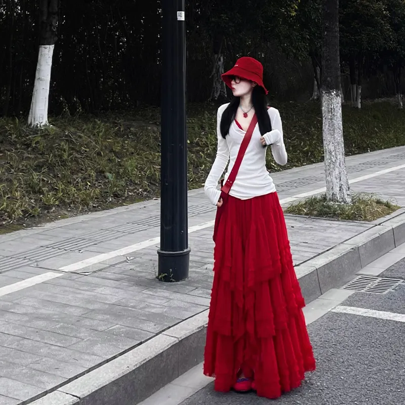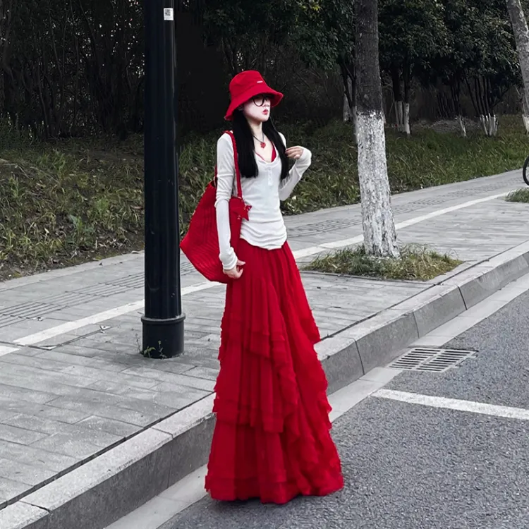 Белый топ + Красная юбка