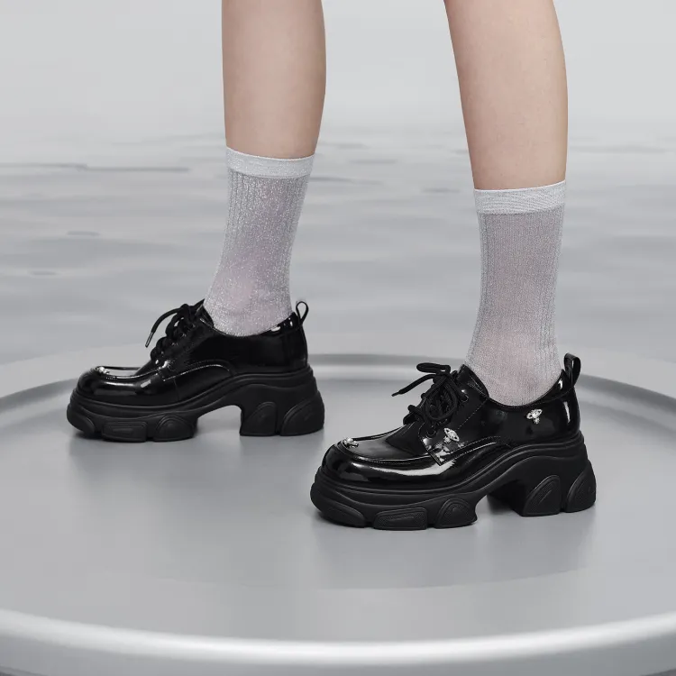 GG CC Балет Балетки Британский стиль Лоферы 7,5 см Женские Черный