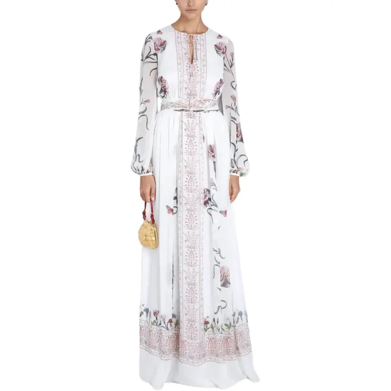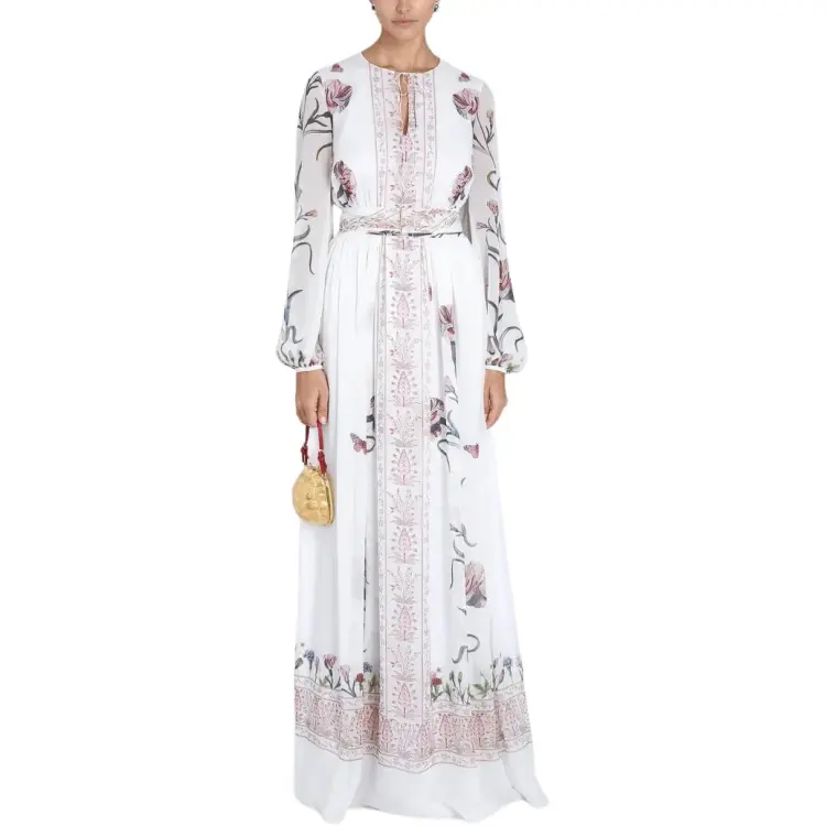 GIAMBATTISTA VALLI SS25 Длинное платье с длинными рукавами Женское белое