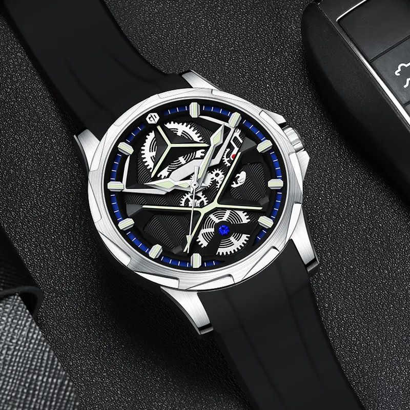 GIGIDIDI Автоматический механический механизм силиконовый ремешок мужские часы белый циферблат
