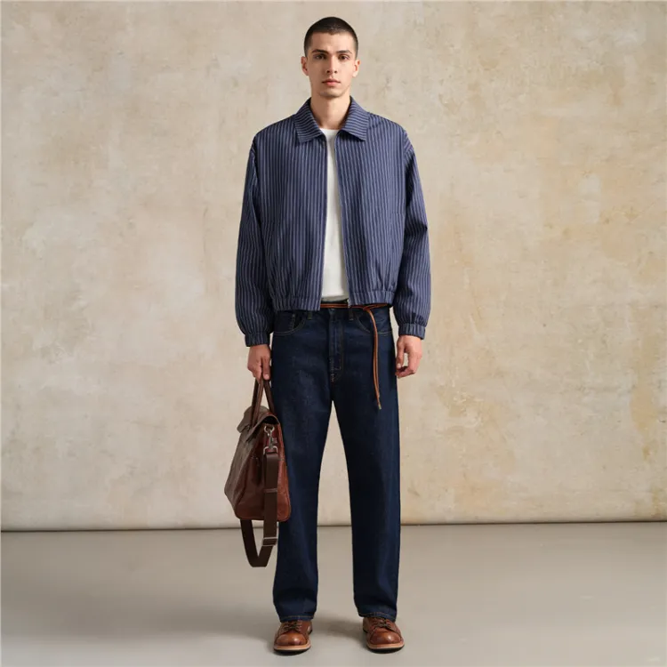 Giordano 06 Синий Белый Полосатый Мужской Пуховик
