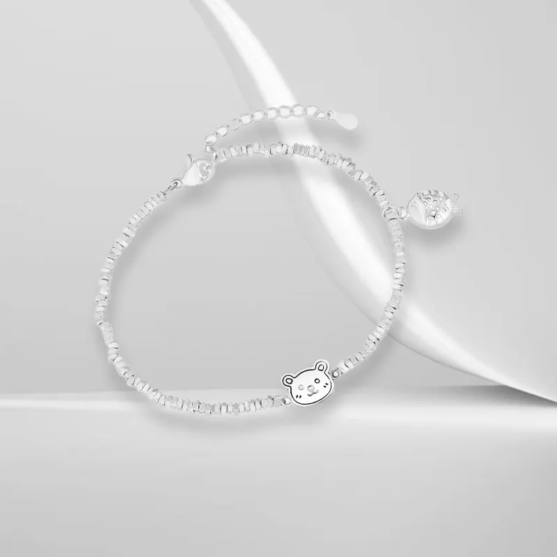 Стиль:Маленький Медведь с Рыбкой Серебряный Браслет из Серебра