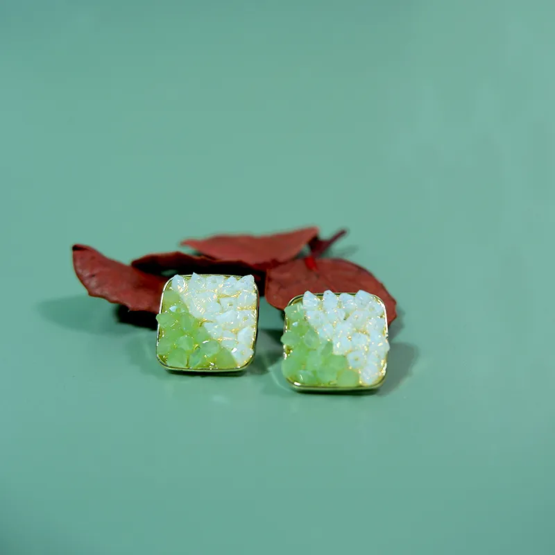 Стиль:Зеленые дикие серьги-гвоздики "Сказка"