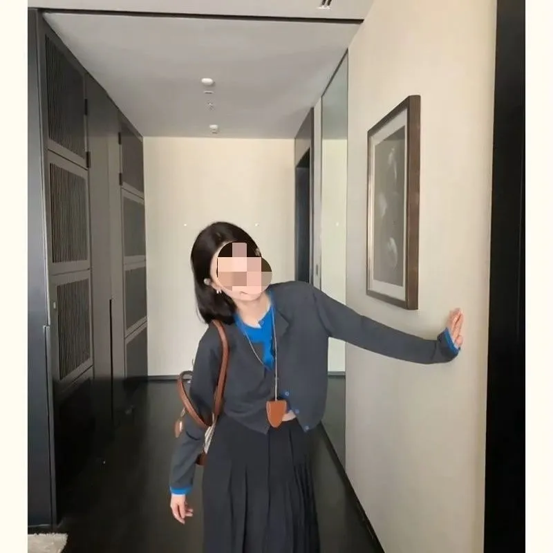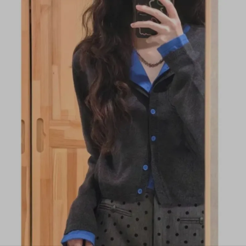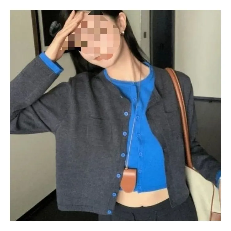GIUHF Серый и Синий Mock Двухкомпонентный Женский Трикотаж