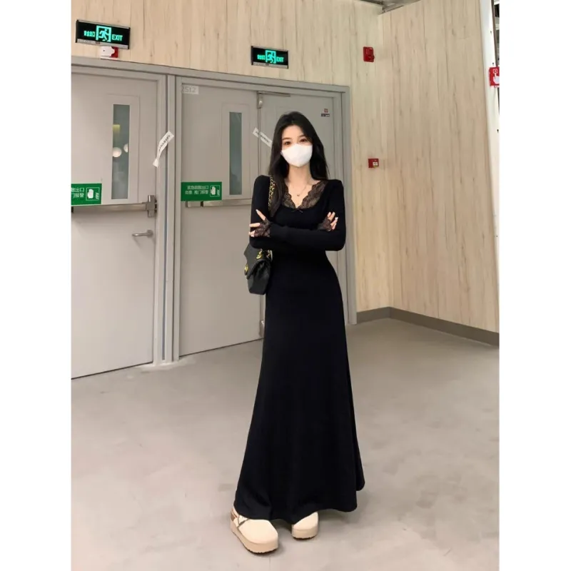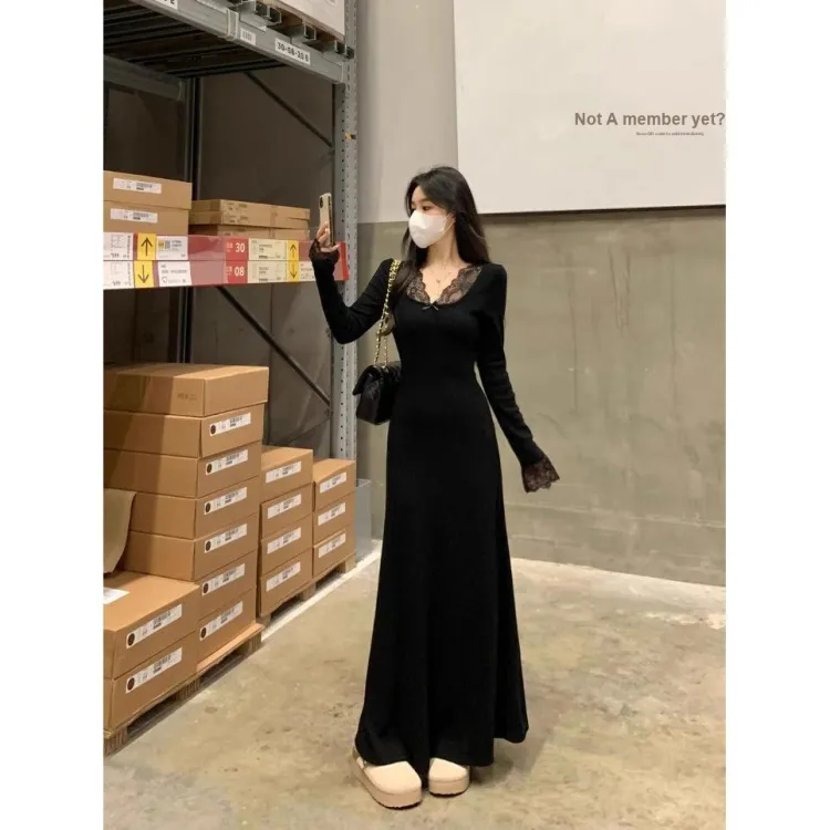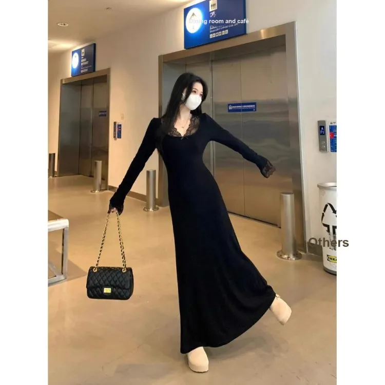 GIUHF Длинное платье с длинными рукавами женское