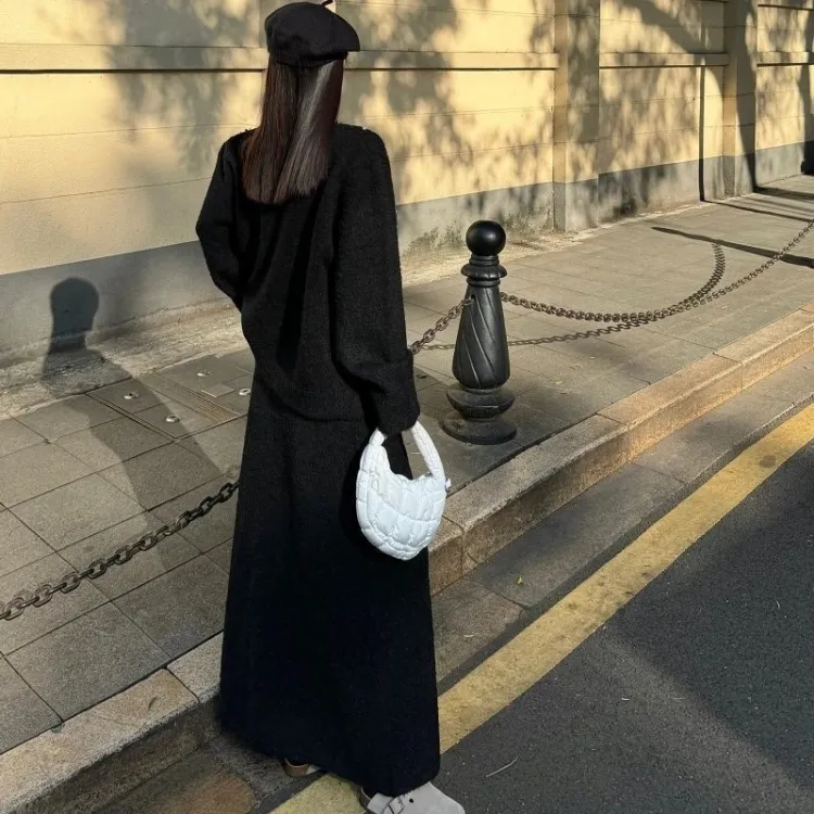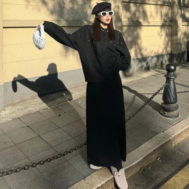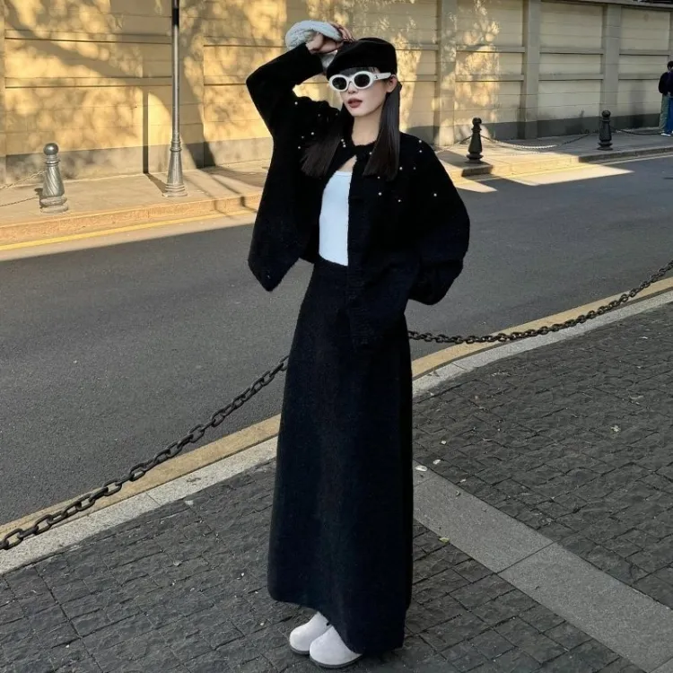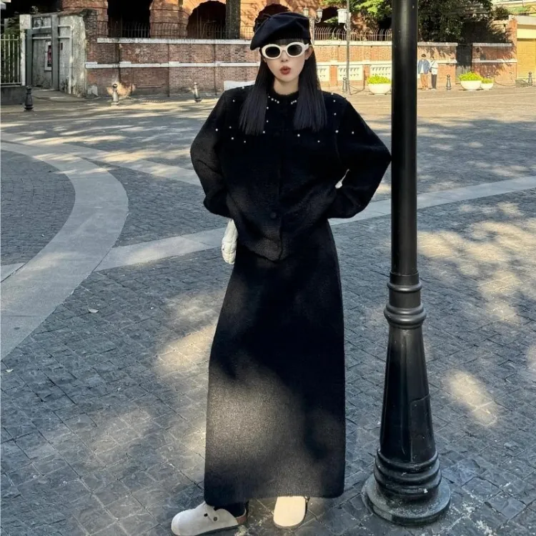 Черный трикотаж + черная юбка