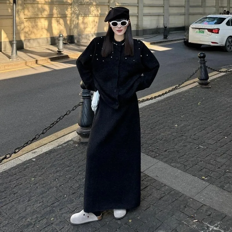 Комплект:Черный трикотаж + черная юбка