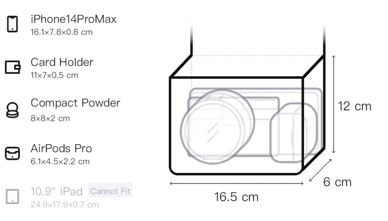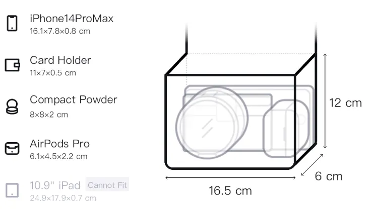 Д16,5*Ш6*В12см