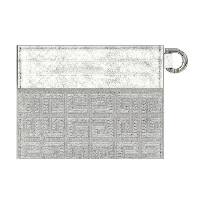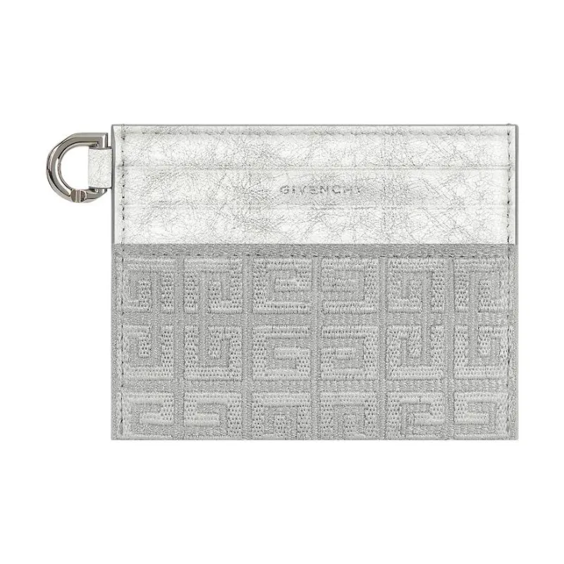 GIVENCHY 4G Вышивка Холст с Ламинированной Кожей Держатель для Карт Женская Серебряный