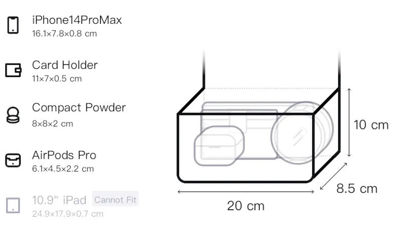 Д20*Ш8,5*В10см
