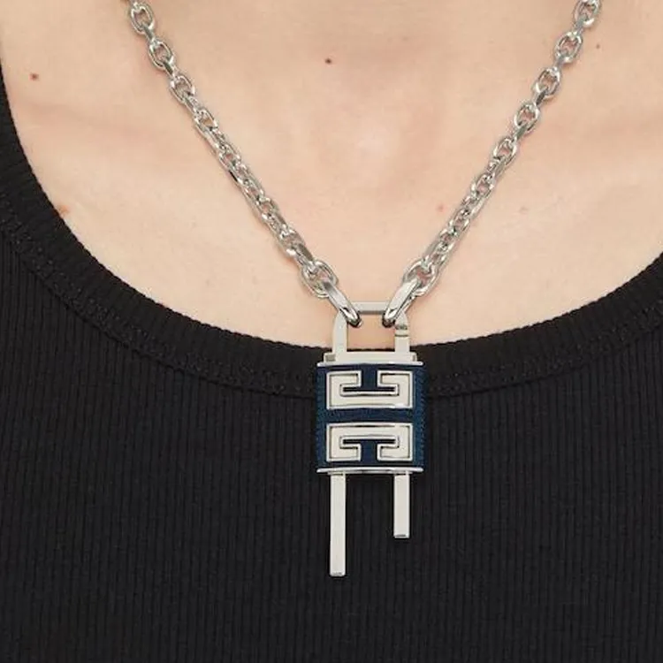 GIVENCHY Латунь Телячья кожа Ожерелья Мужской Синий Серебряный