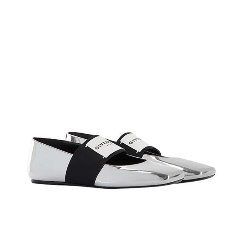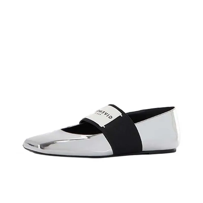Givenchy Срезанный Квадрат Плоская подошва Туфли Мэри Джейн Женские Серебряные