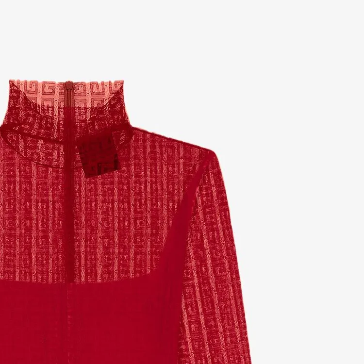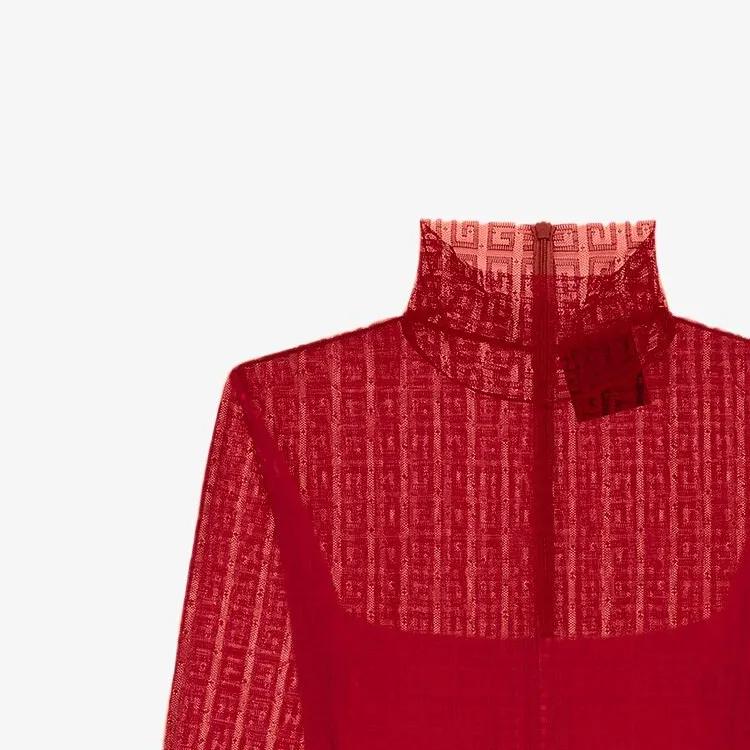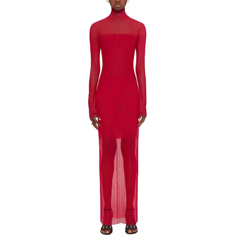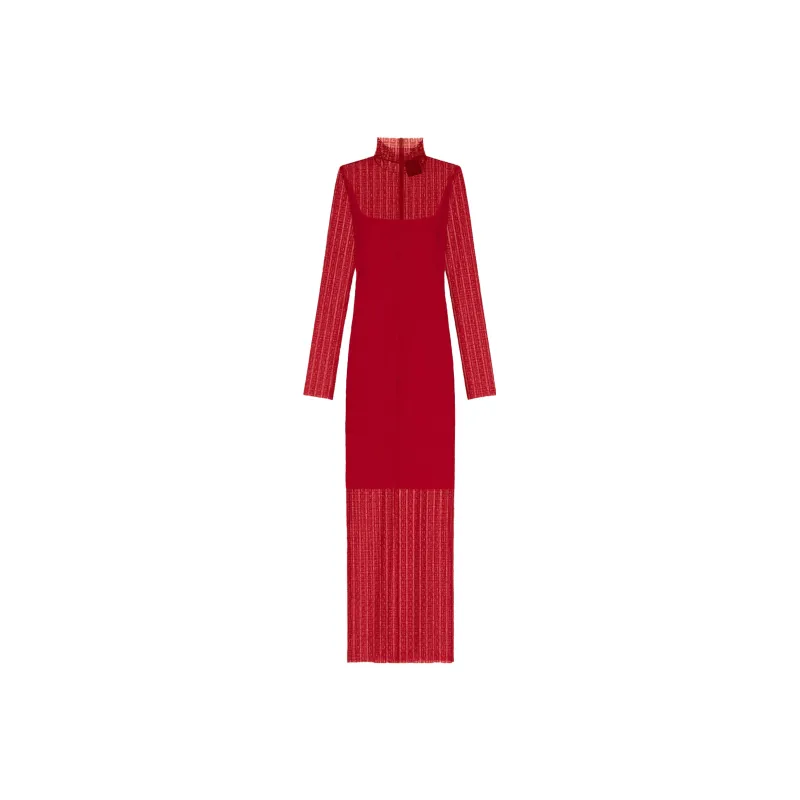Givenchy SS24 Длинное платье с длинными рукавами женское красное