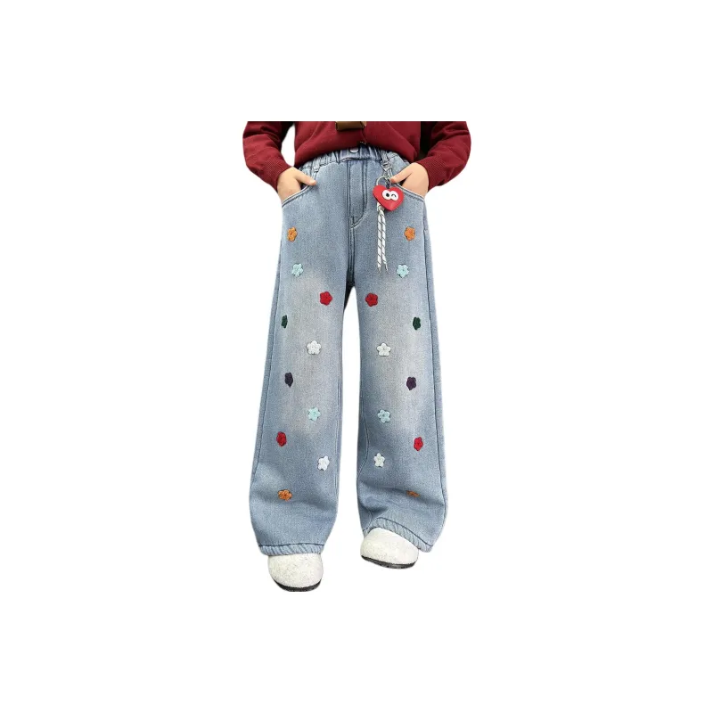 Giyu С флисовой подкладкой Джинсы Брелок включен Школьный возраст Джинсы