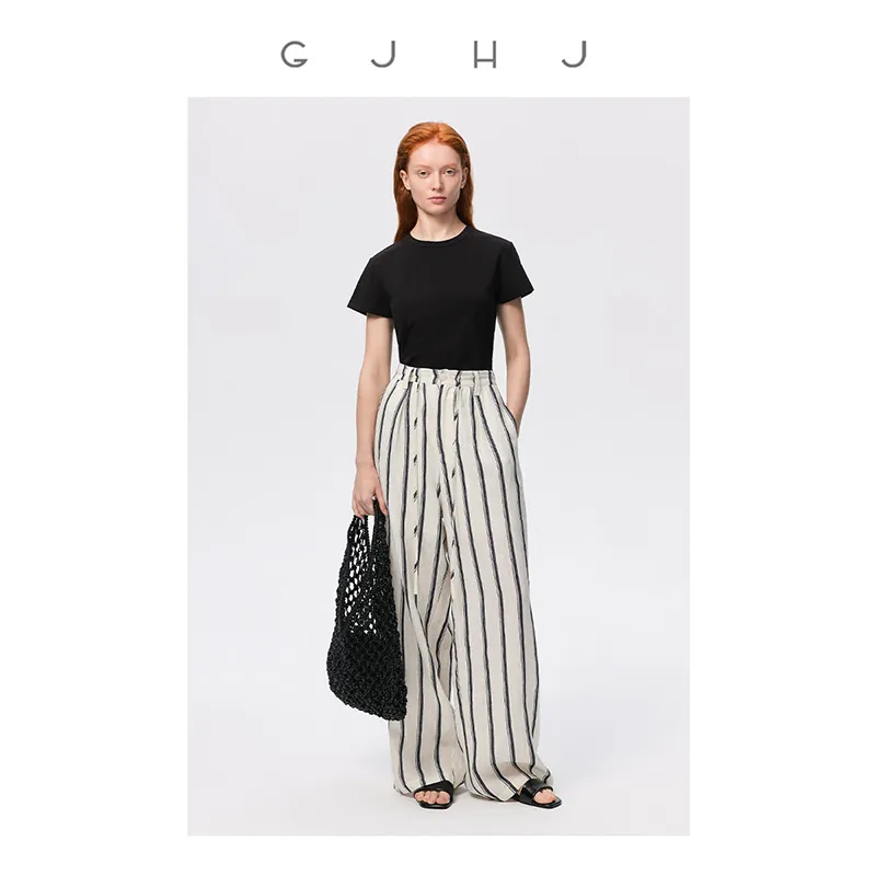 GJ HJ Классический черный полосы женские повседневные брюки