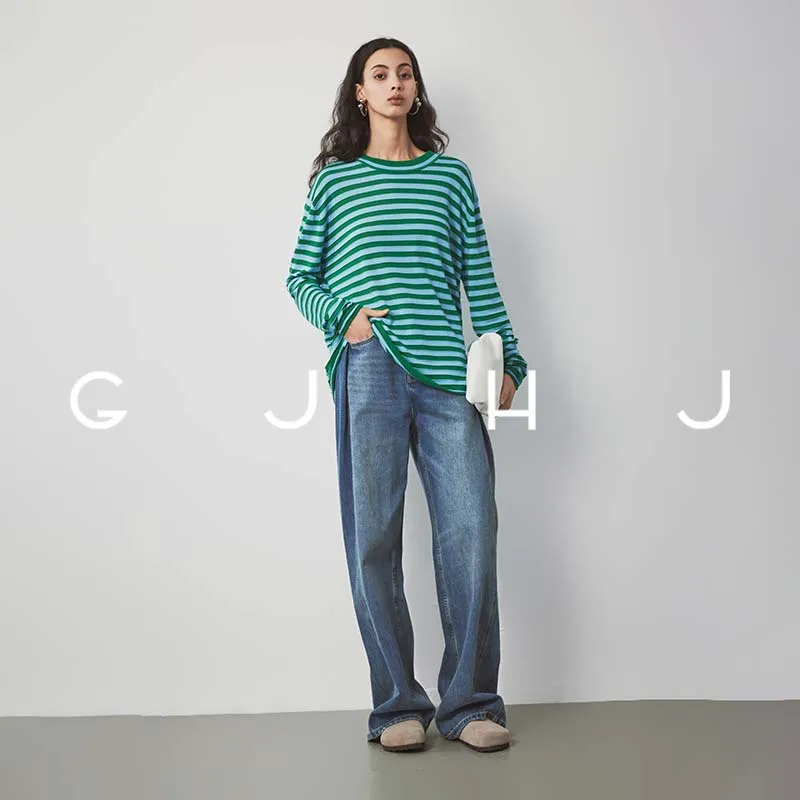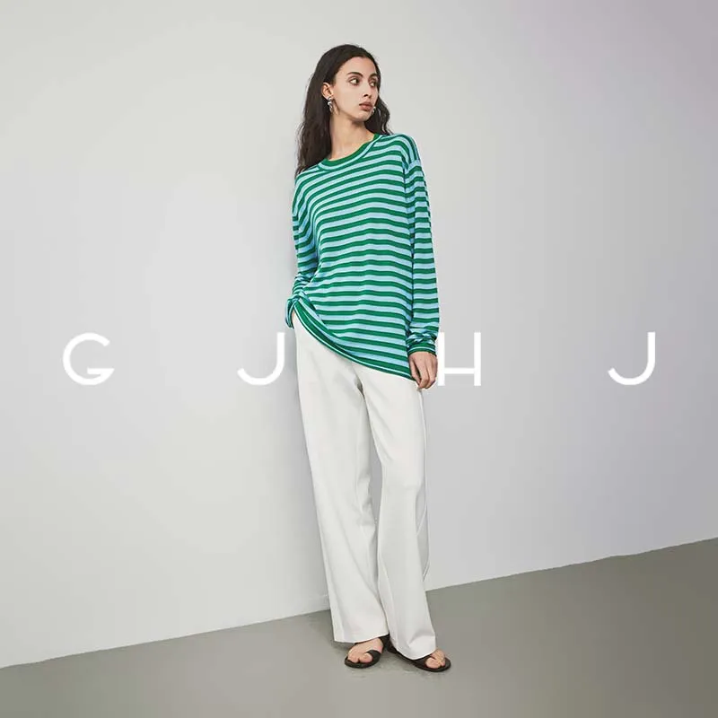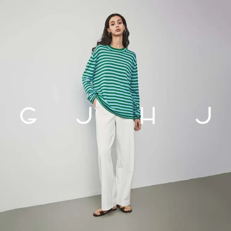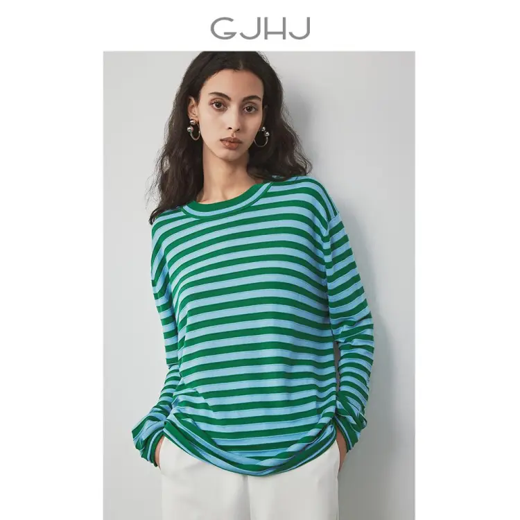 GJ HJ Синий Зеленый Полосы Женский Трикотаж