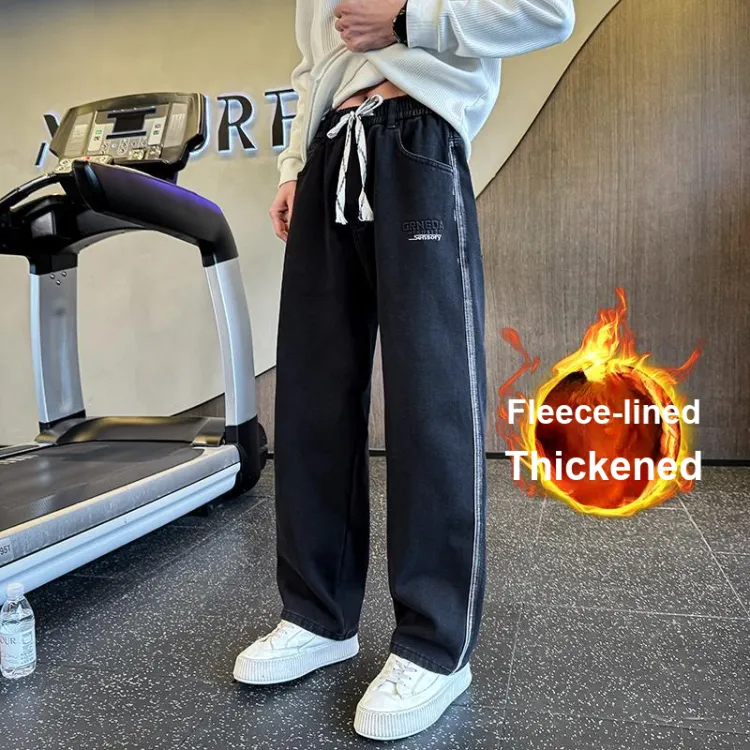 GL Черные джинсы с флисовой подкладкой и утолщенные унисекс