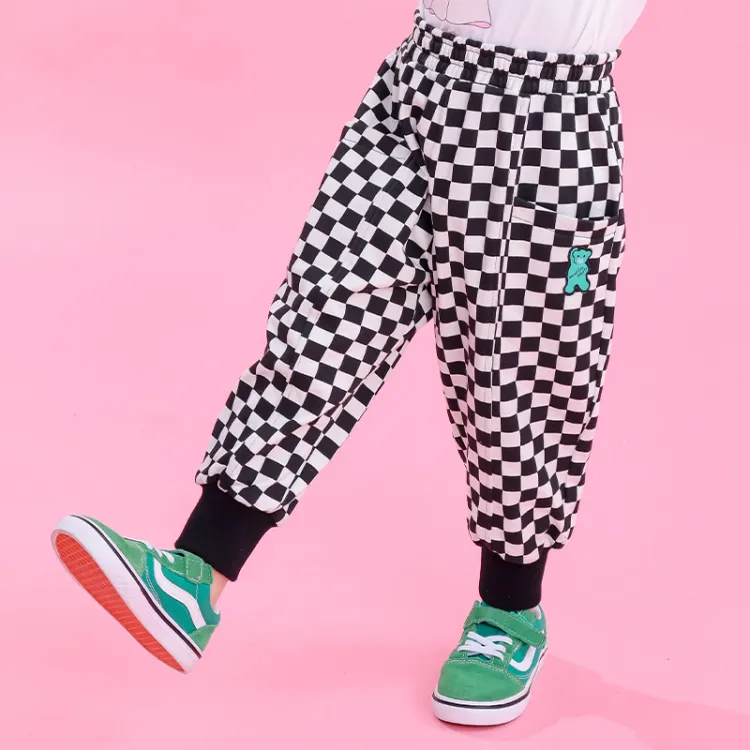 GLADDYBEAR Черно-белая шахматка Детские тренировочные брюки