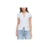 GLASSONS Принт Cap Sleeve Пуговица Up Blouse Shirt Женские