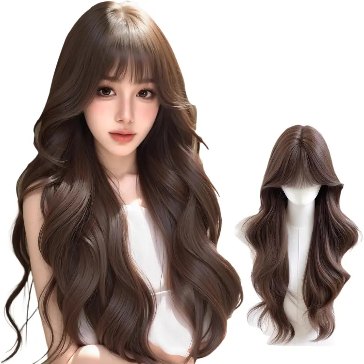 GLUNA 3,0 Big Head Кожа с Бесплатной Настройкой Женская Перука Высокая Температура Пряжа Длинные Волнистые
