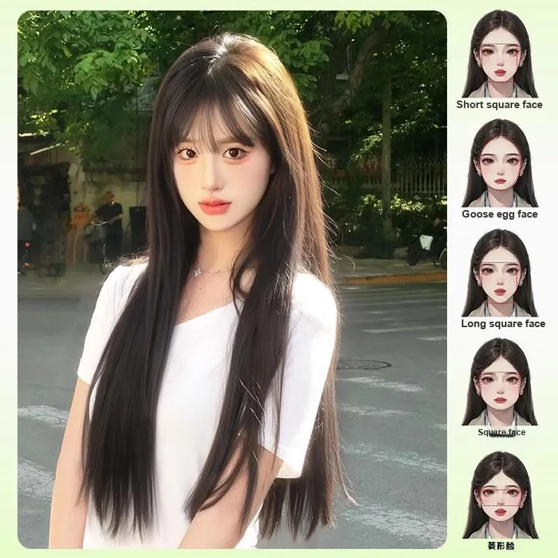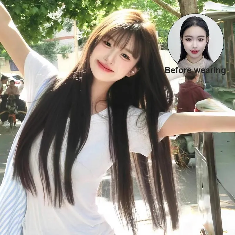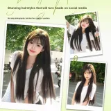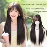 GLUNA First Love White Moonlight Черный длинный Straight Женская парик Высокая температура Пряжа