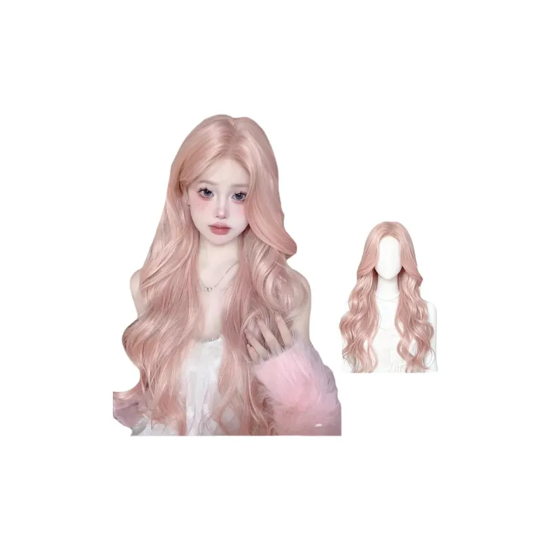 GLUNA Грейпфрутовый розовый Средний Разделённая Чёлка "восьмёрка" Большая волна Женская Перука Высокая температура Пряжа
