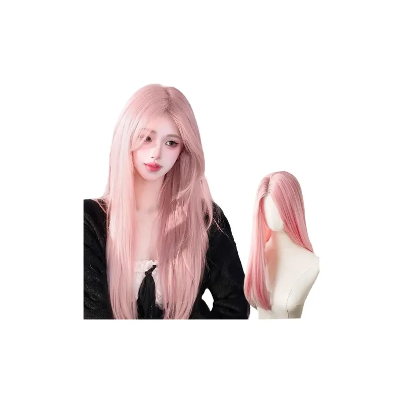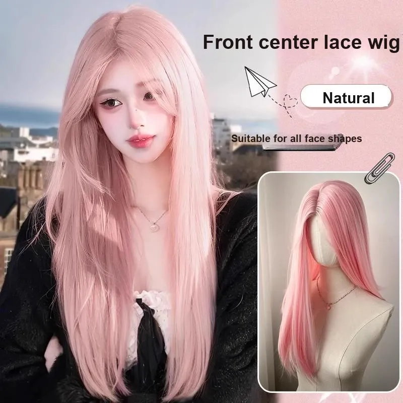 GLUNA Лолита Forehead Lace CENTER Разделённая Чёлка Длинные Прямые Волосы Женская Перука Розовая