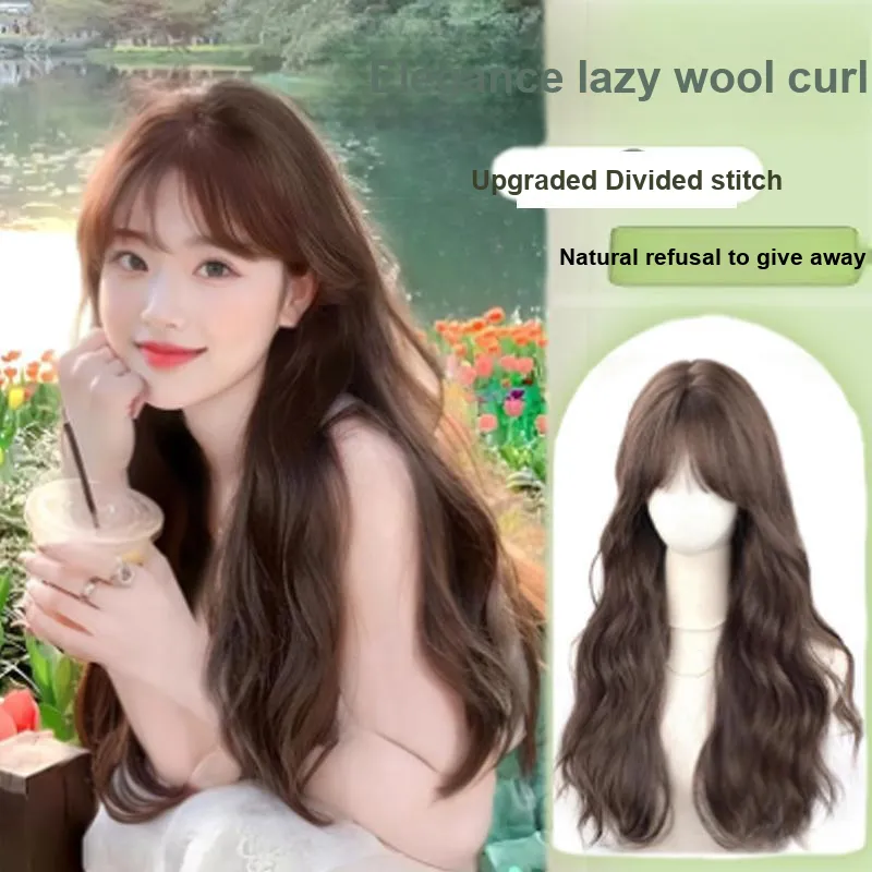 GLUNA Длинная парик с кудрявыми волосами и тонкой челкой