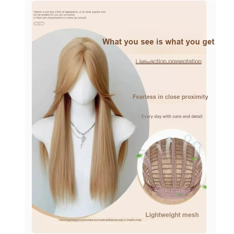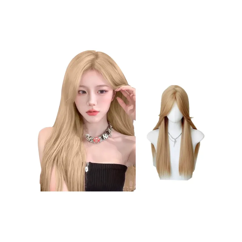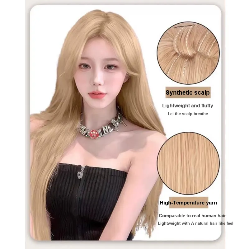 GLUNA Молочный чайно-белый Золотой Средний Часть Длинный Прямые волосы Перука
