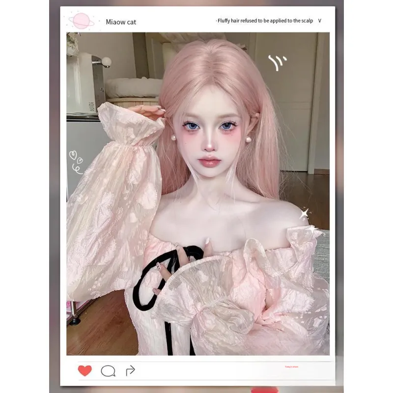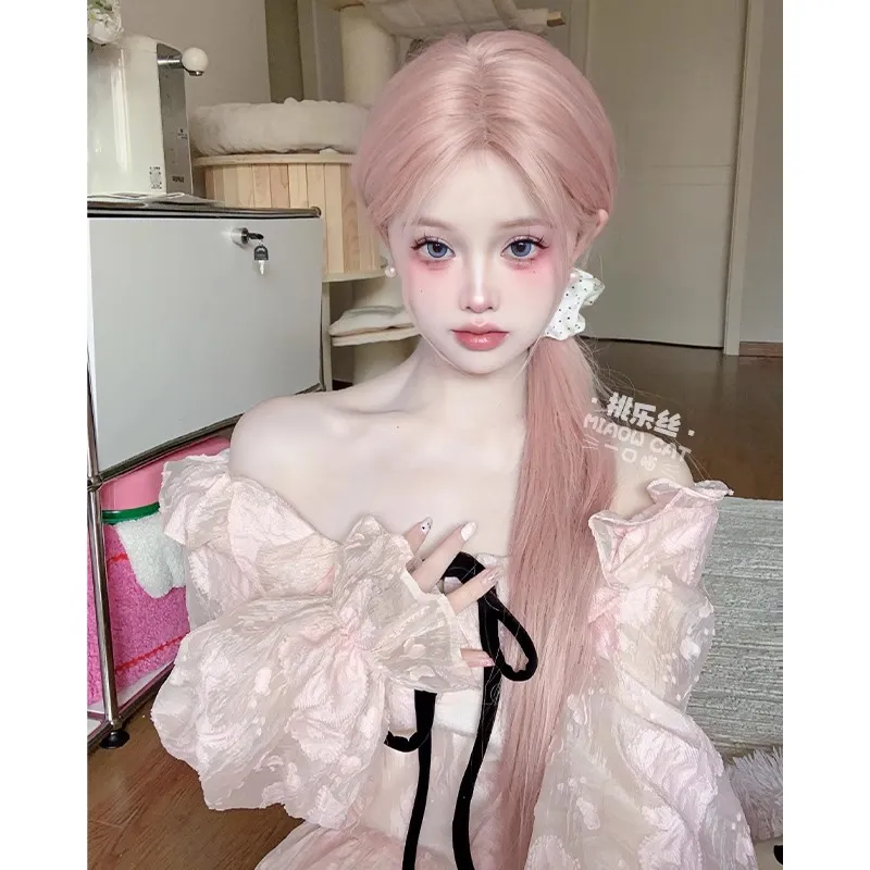 GLUNA Розовый Средний Длина (размер в длину) Прямые волосы Женская Перука Высокая температура Пряжа
